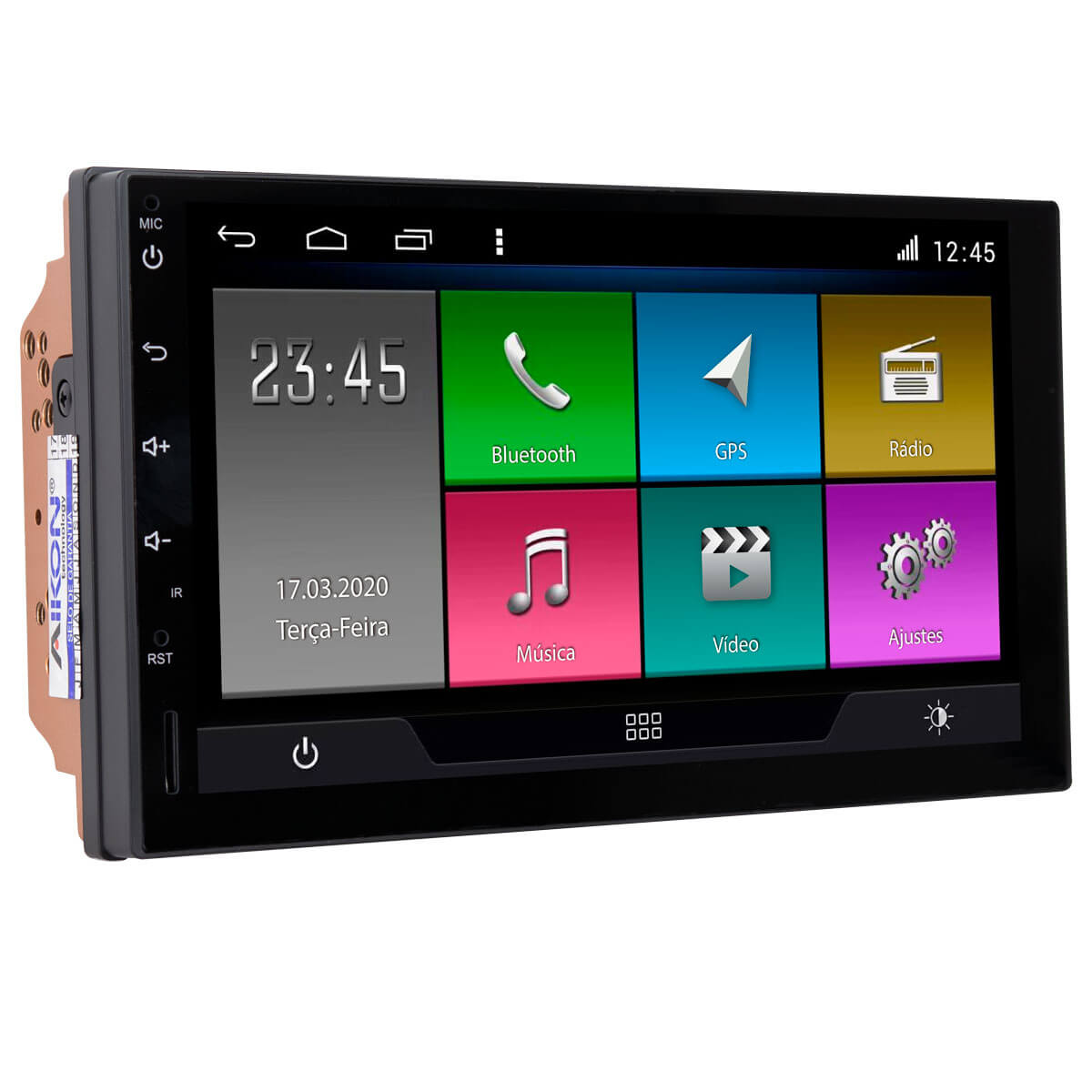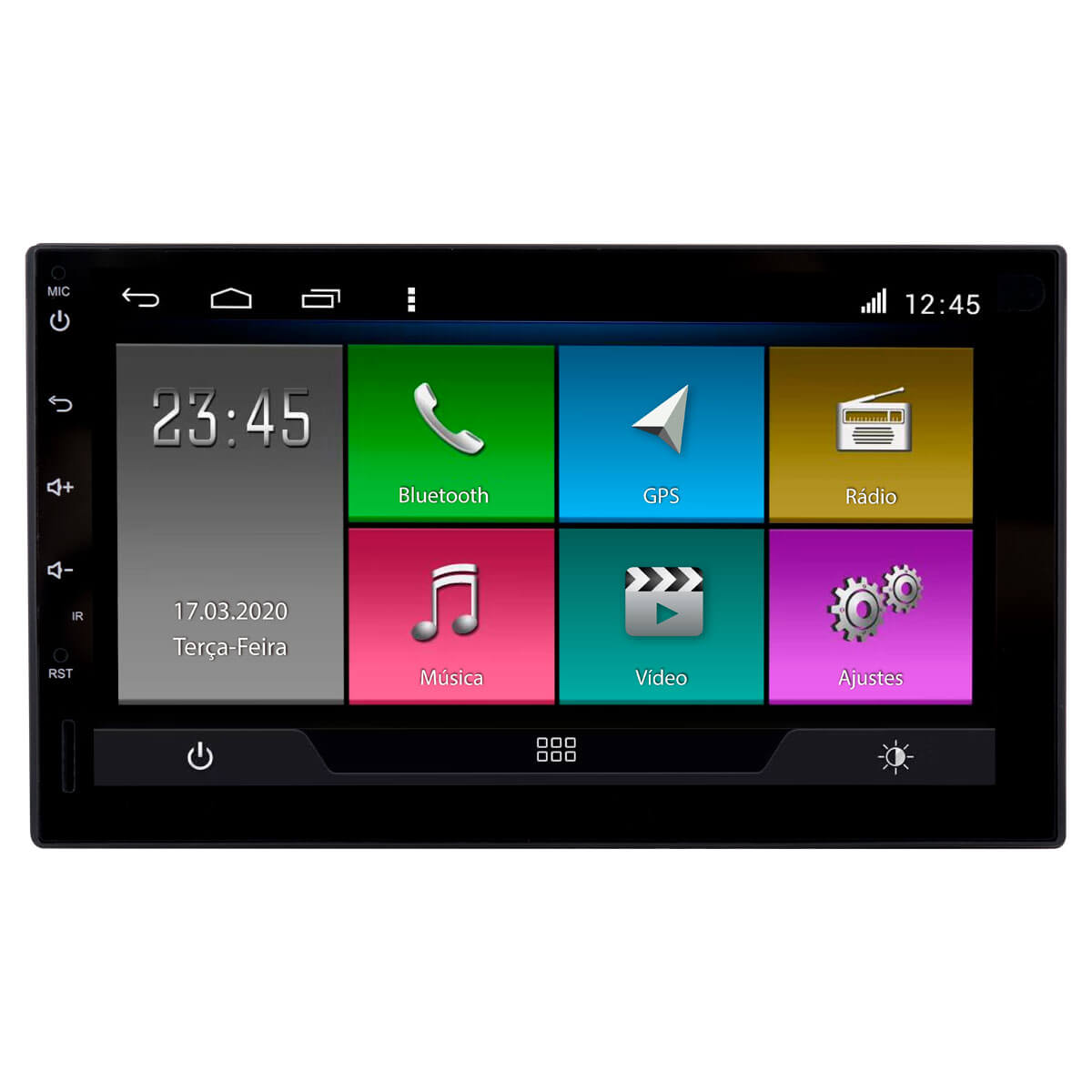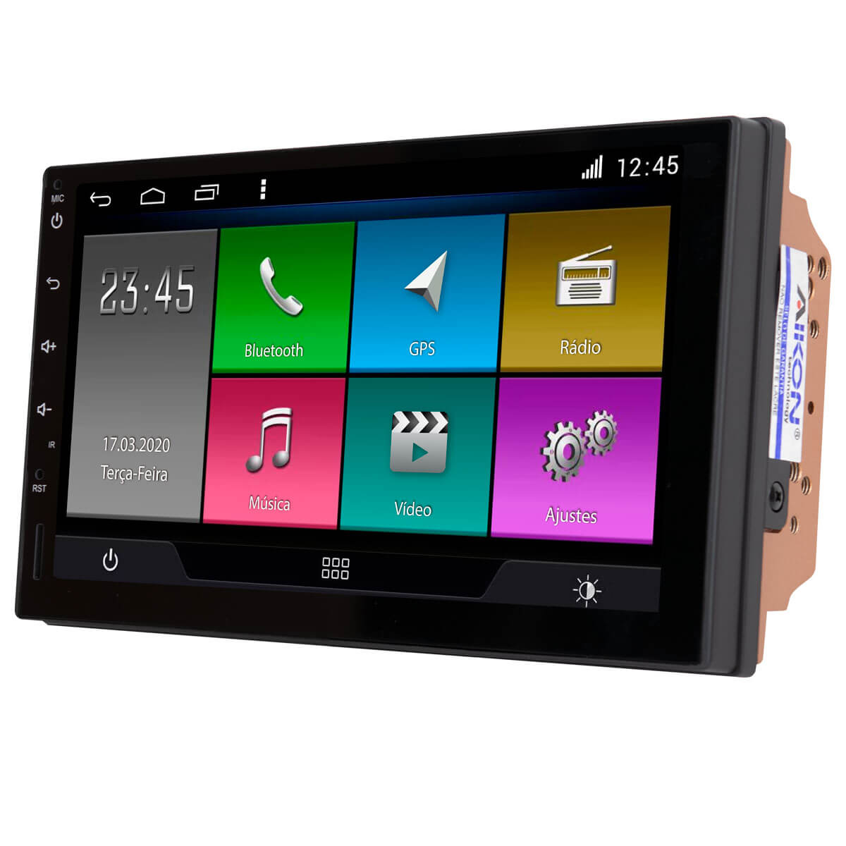 - Display 7″ LCD HD com resolução 800×480, 1024×600, 1204×768, 1280×720, 1920×1200.