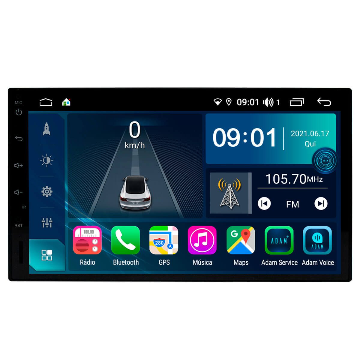 Rádio FM com sistema RDS, busca automática com memorização de até 18 estações FM.